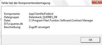 2. The security settings must be adapted to the directory-C:\ProgramData\Tumbov Software\Contract Manager DiTu (only relevant in case of standard-installation). If you cannot fix the problem by that, please copy the files VRTGVERW.DB, QUERIES.DB into another directory, e.g. into. "C:\Contract Manager DiTu\Language_Files" and then adjust the registry entry "Path" under [HKEY_CURRENT_USER\Software\Contract Manager DiTu], so that it is set to the new directory.