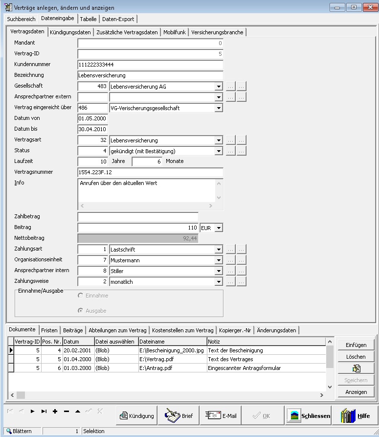 Blättern Sie einfach durch die Screenshots von den wichtigsten Programmbereichen, um dadurch eine bessere Vorstellung zu bekommen was die Contract Manager DiTu alles kann.
